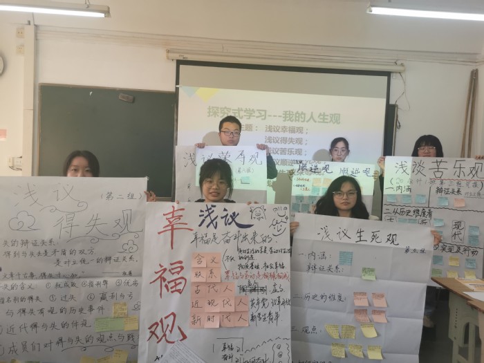 此次专题探究式学习,将单向度的老师讲授变为多向度全员主动参与的学习过程,同学们对于知识的理解更加透彻,锻炼了发现问题、思考问题和解决问题的能力,小组分工合作更有益于培养同学们的团结协作精神。探究式教学打破了传统课堂的教学思维,充分调动了同学们参与课堂的积极性,为思政课注入“源头活水”。