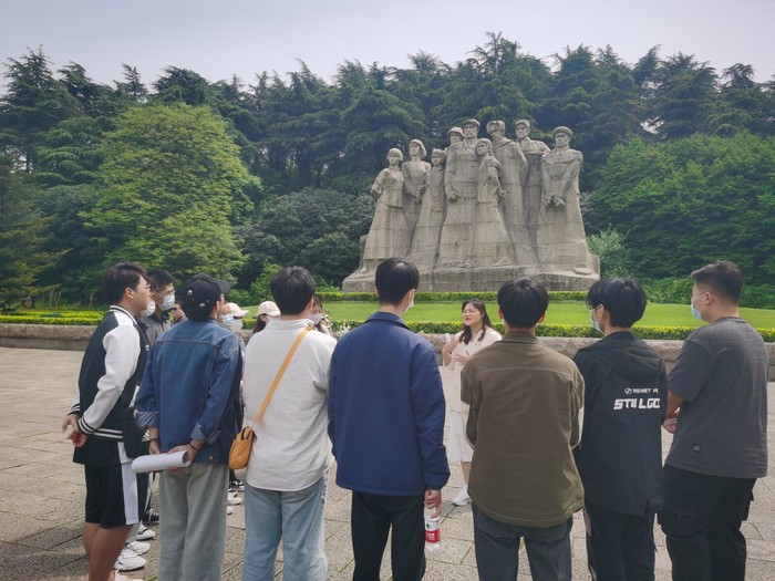 以史为鉴,重温百年奋斗史;述往思来,坚守初心和使命。为了让青年学生真切地感受到中国共产党百年艰辛的奋斗征程,4月18日下午,马克思主义中国化教研部把党史学习教育和思政课有机融合,在校党委常委、宣传部部长、马克思主义学院院长季海菊的带领下,联合青年学生党史研学小组将课堂“搬”进雨花台烈士陵园的现场,结合着一幅幅珍贵的历史照片、一件件历经风雨的革命文物,将党的故事、革命的故事、英雄的故事展现给学生,带来了一堂“别开生面”的思政课实践教学。