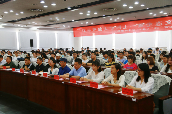 6月5日,世界环境日,一场别开生面的生态文明教育思政大课在我校二楼报告厅举行。来自江苏开放大学、南京艺术学院、南京新城中学、银城小学、拉萨路小学分校方兴小学的大中小学学生代表、社区代表以及优秀环保志愿者等参加了这堂主题思政课。本次活动由马克思主义学院和团委联合举办,活动得到江苏省环境保护厅环境宣教中心、江苏绿色之友、部分大中小学和社区、南京温氏有限公司等22家企事业单位和学校资源建设中心的大力支持。江苏绿色之友秘书长王丽娜、部分合作单位代表、学校质量管理办公室陆宝华主任、教务处沈宏副处长、党委宣传部、校团委及马克思主义学院全体负责人、思政课教师、部分辅导员老师与来自两个校区的300多名学生同上本次思政大课。