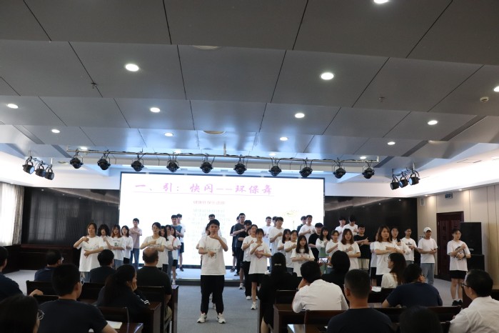 活动开始前,来自江苏开放大学的同学们带来快闪---环保乐舞歌,在欢快的歌声里面,同学们面带笑容,生动地展现了舞蹈里的快乐环保、人人环保的内容。