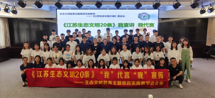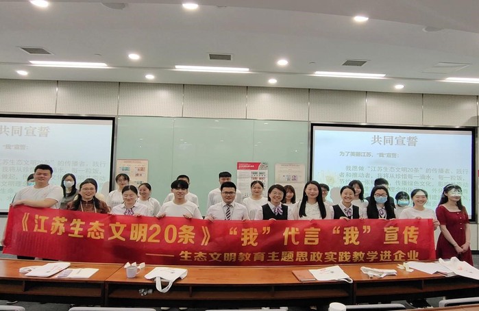 近日,马克思主义学院“《江苏生态文明20条》我宣讲我代言”活动走入企业,将生态文明接力棒不断传递。在教师高杨、张玉兰的带领下分别走进紫金农商银行和大峘集团有限公司。