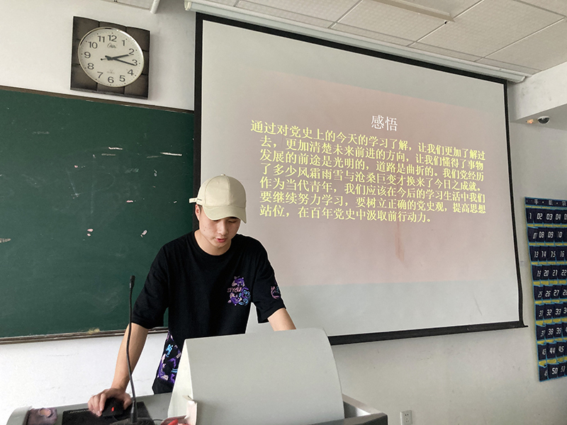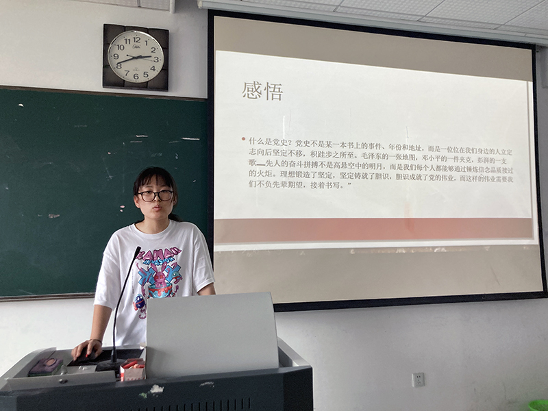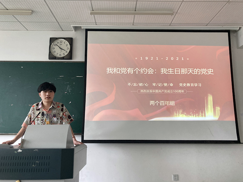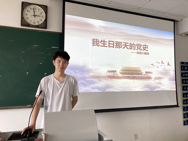 在前期认真学习、充分准备的基础上,同学们满怀激情,踊跃发言:中国共产党第一次全国代表大会、八七会议、古田会议、遵义会议、瓦窑堡会议、洛川会议、党的六届六中全会、七大、党的七届二中全会、党的十一届三中全会、十八大、十九大等重要会议,五四运动、南昌起义、西安事变、皖南事变、抗战胜利、重庆谈判、解放战争、中华人民共和国成立、抗美援朝、“四个现代化”提出、恢复联合国席位、中美建交、改革开放、香港回归、加入世贸、举办奥运会、设立雄安新区、抗击新冠肺炎疫情、全面脱贫等重要事件,《为抗日救国告全体同胞书》《告台湾同胞书》《中华人民共和国宪法》《关于改进工作作风、密切联系群众的中央八项规定》《关于加强和改进新形势下高校思想政治工作的意见》等重要文件……一个个重要的时刻、一件件历史事件、一位位伟大人物在同学们生日这天汇聚,党史与国史、革命史相互交织。同学们用一段段文字、一幅幅图片、一帧帧影像,拼出了中国共产党“雄关漫道真如铁,而今迈步从头越”的百年奋斗历程,展现了中国共产党人“为有牺牲多壮志,敢教日月换新天”的革命豪情壮志。