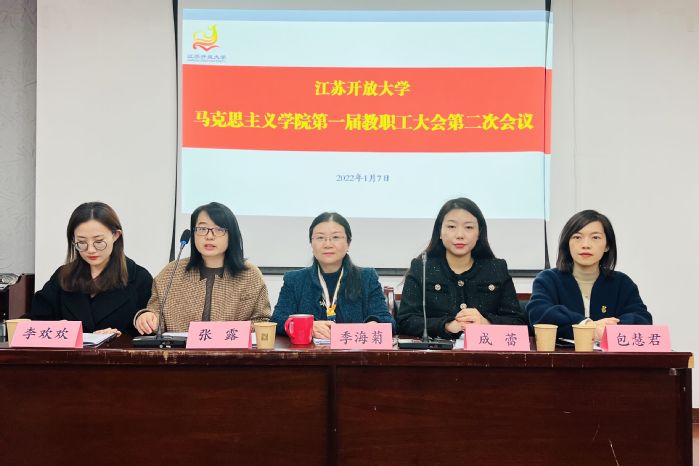 1月7日下午,马克思主义学院召开第一届教职工大会第二次会议。会议由副院长张露主持。学院党总支部书记成蕾传达了校长崔新有对本次大会的致辞。崔校长对马克思主义学院2021年的各项工作给予了充分肯定,对学院全体教职员工的辛勤付出表示衷心的感谢。他希望马克思主义学院全体教职员工在新的一年里继续增添动力、提高活力、形成合力,为全面提高综合竞争力,办好江苏人民的大学贡献马克思主义学院的力量!