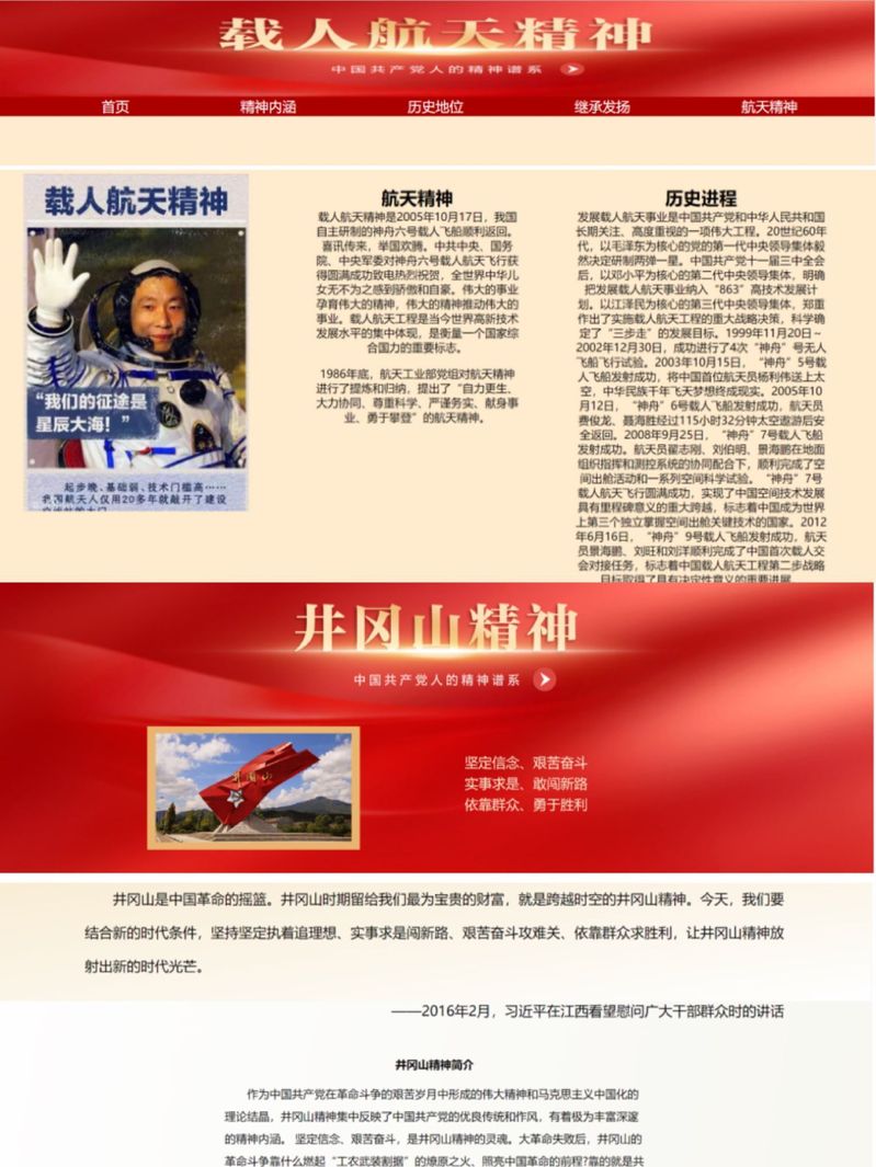 信息工程学院学生实践作业:制作“中国共产党人的精神谱系”学习页面
