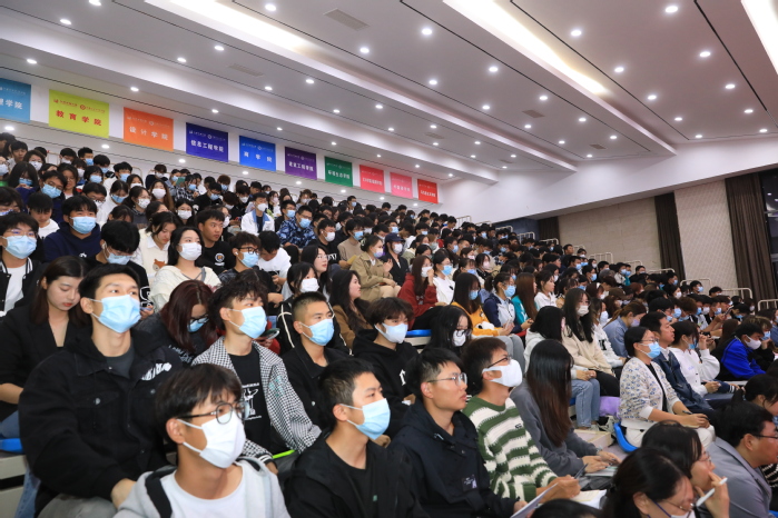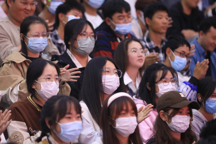 10月25日,校党委书记王建明教授以《让青春与奋斗作伴,让梦想和时代同行》为题,在应天校区体艺馆406室,为2022级新生讲授了一堂生动的“思政第一课”。校党委副书记、副校长金丽霞,有关部门和各党总支部负责人、全体思政课教师和辅导员与新生一起,现场聆听了这堂课。