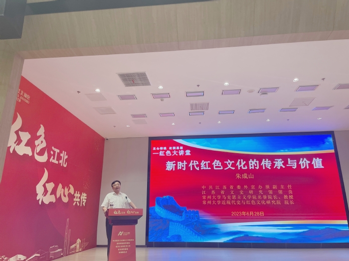 在庆祝中国共产党成立102周年之际,此次揭牌仪式的举办,开启了我校与江北新区红色广场优势互补、相互协作、互利互惠、共同发展的新局面,奠定了校地、校馆、校校合作共建红色基地,用好红色资源的基础。仪式上,江苏省文史研究馆馆员朱成山以《新时代红色文化的传承与价值》为主题讲授“示范思政课”。