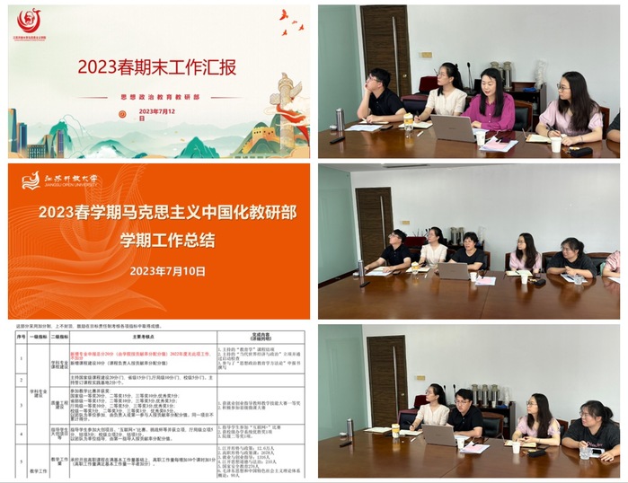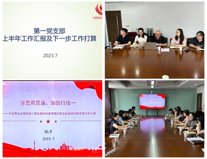 会上,第一党支部书记杨斌、第二党支部书记陆洋分别就上半年支部党务工作做了总结汇报,思想政治教育教研部副主任高杨,马克思主义中国化教研部副主任汪莉丽,形势与政策教研部教师刘敬东分别围绕学院目标责任制考核指标体系,对教研部上半年工作总结、下半年工作计划和暑期工作安排作了汇报,学院办公室主任李欢欢对上半年学院办公室工作作了总体汇报。