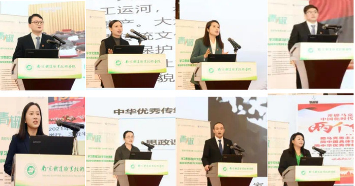 上午场论坛,伏志强、解雅梦、邱蓓、曹顺四位教师分别以“基于文化自信的高职思政课教学创新与实践——以工匠文化为例”“中华优秀传统文化融入‘思想道德与法治’课的思考”“传承中华文脉照亮复兴之路——从大运河文化谈起”“关于优秀地域文化与思政课深度融合的思考与实践——以吴文化为例”为题,进行了精彩的教学展示。南京航空航天大学马克思主义学院党委书记徐川对其进行了精彩的点评,并作了题为“人不弘道道不远人——走近中华优秀传统文化”的微宣讲。
