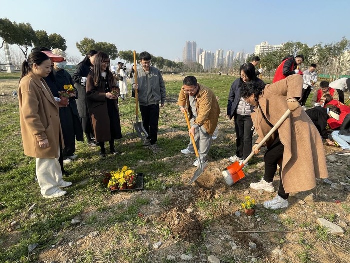 “而我将爱你所爱的人间,愿你所愿的笑颜......”伴随着悠扬的歌声,一场别开生面的党日活动在江畔草坪拉开帷幕。3月12日下午,马克思主义学院第二党支部以植树节为契机同江东街道党工委及其辖区“两新”党组织开展“党建聚合力植树添新绿”联合党日活动。马克思主义学院第二党支部全体党员、机关党委第二党支部、江东街道党员干部以及辖区“两新”党组织成员、中建三局绿投公司华东公司、中建一局二公司共40余人参加活动。活动由第二党支部书记陆洋主持。