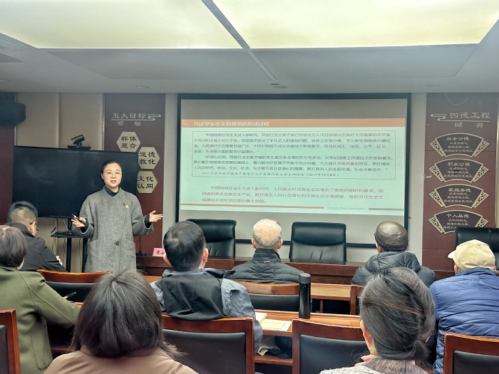 宋小洪以问题为导向,从“如何处理人与自然的关系,何以上升到中国式现代化的实现”切入授课,引导党员思考“为什么建设生态文明、建设什么样的生态文明、怎样建设生态文明”三个问题。随后,她以重要时间节点为脉络,梳理了习近平生态文明思想的形成过程,并从人与自然、保护与发展、环境与民生、自然生态各要素之间、国内与国际等几对关系出发,深刻阐释其丰富内涵及实践要求。最后,她结合《江苏生态文明20条》《江苏生态文明教育促进办法》,号召党员发挥先锋模范作用,主动投身美丽江苏建设,加快推进人与自然和谐共生的现代化,助力第二个百年奋斗目标,以中国式现代化全面推进中华民族伟大复兴。