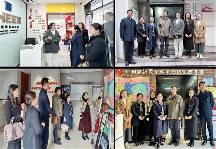会议结束,季海菊一行先后到华侨路街道慈悲社社区、广州路社区开展走访调研,并与慈悲社社区党委副书记蔡琳琳、广州路社区党委书记王心彤进行交流。在交流中,大家对社区的文化建设、亮点工作、品牌打造等有了更加全面的认识,同时也进一步了解了社区和群众所需所盼,为后续开展精准性强、有效性高的合作共建打下坚实基础。