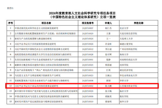 9月13日,教育部社科司发布《关于2024年度教育部人文社会科学研究一般项目立项的通知》,我院副教授陈大鹏博士申报的《习近平总书记关于命运共同体的重要论述研究》获立中国特色社会主义理论体系研究专项任务项目。