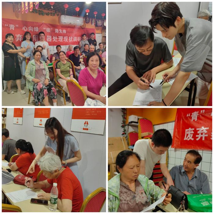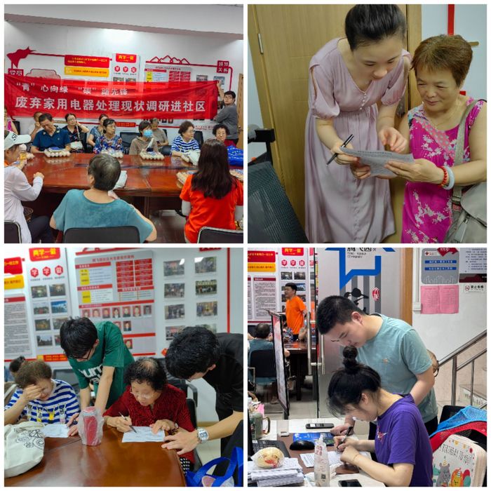 自年初以来,我院“行走的环保思政课”师生实践教学团队,围绕“‘青’心向绿·‘碳’路先锋”主题,开展了系列宣传与调研活动。以1月师生团队走进凯燕电子有限公司开展现场思政课教学为起点,我们跨越校园界限,携手江东街道、宝塔桥街道,深入洲岛紫园、长阳社区以及宝塔桥东街和方家营社区,以行动诠释环保责任,共绘绿色生活蓝图。暑假期间,师生团队持续推进环保项目的调研实践。7月3日,师生团队走进腾飞园社区,分发问卷,收集数据,以科学的方法了解社区在废弃家用电器处理方面的现状和挑战。同时通过细致的宣传教育,启迪居民对废弃家用电器科学回收处理的认知,激发社区对环保的共鸣。7月6日,团队来到中梦公司和好邻居菜市场,通过深入访谈和调研,了解居民对废弃家用电器处理的真实看法和深层需求,增进居民对环保问题的理解,为构建绿色社会贡献了智慧和力量。