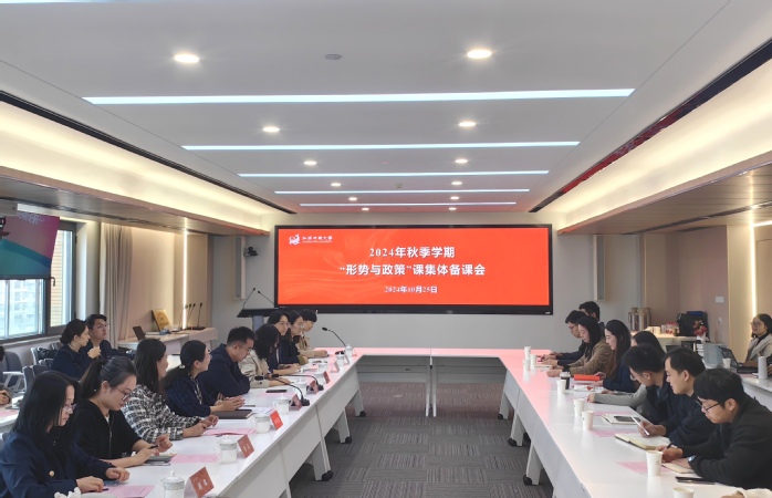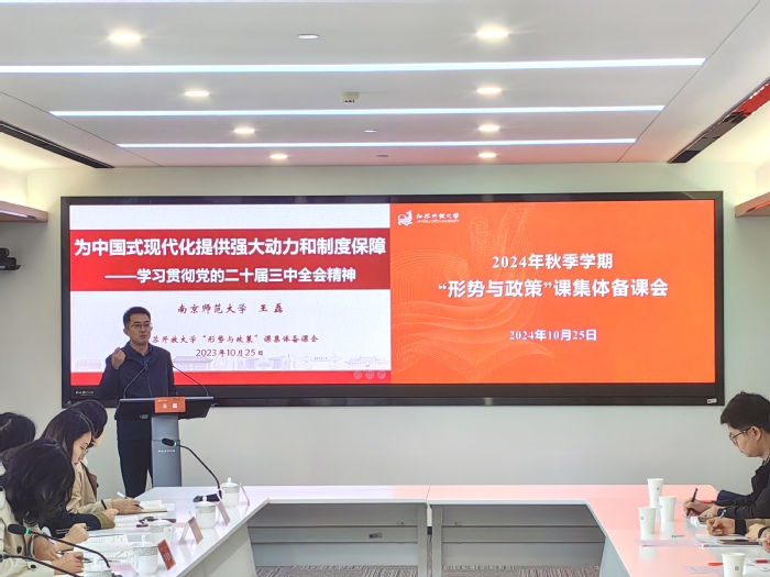 备课会上,王磊解读了2024年秋季学期“形势与政策”课程教学重点,并介绍了南京师范大学“形势与政策”课程建设情况。