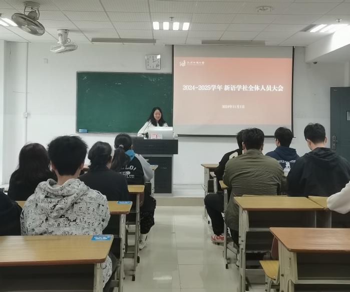 11月1日,新语学社在应天校区206教室举行“学习贯彻党的二十届三中全会精神”专题学习暨2024-2025学年全体人员大会。社团指导教师、马克思主义学院青年教师张丁月、韦庆玲及应天校区新语学社全体学生参加。会议由韦庆玲主持。