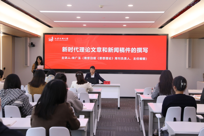 为进一步提升我校教师的理论文章撰写能力和新闻稿件写作水平,11月8日上午,由党委宣传部和马克思主义学院联合开展的专题讲座《新时代理论文章和新闻稿件的撰写》在定淮门校区八楼会议室成功举办。本次讲座特邀南京日报思想理论周刊负责人、主任编辑宋广玉主讲,学校党委宣传部副部长刘文静、全校相关部门新闻宣传通讯员以及马克思主义学院全体教师参加了此次活动。讲座由马克思主义学院党总支书记张露主持。