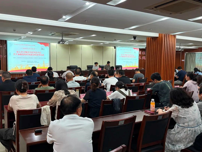青年教师刘敬东以《党的作风建设永远在路上——深入学习领会习近平总书记关于加强党的作风建设的重要论述》为主题开展专题党课,重点从“党的作风建设的历史演进”“牢牢把握作风建设的核心问题”“以自我革命精神走好新时代赶考之路”三个方面,结合详实的数据和生动的典型案例,引导街道党员干部筑牢信仰之基、弘扬实干之风。