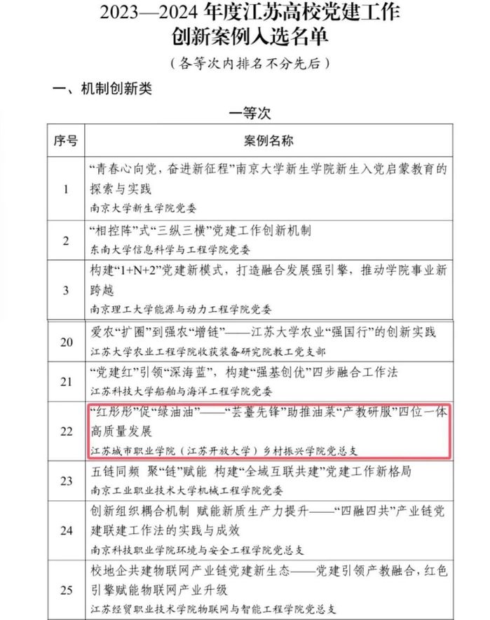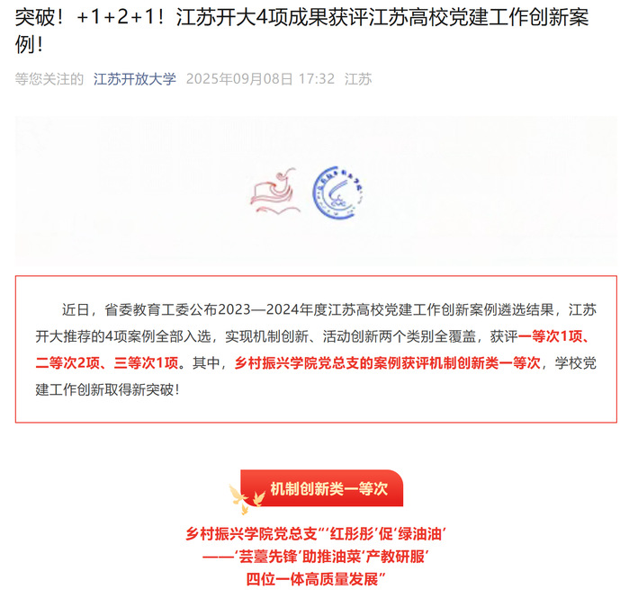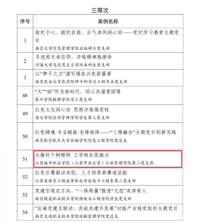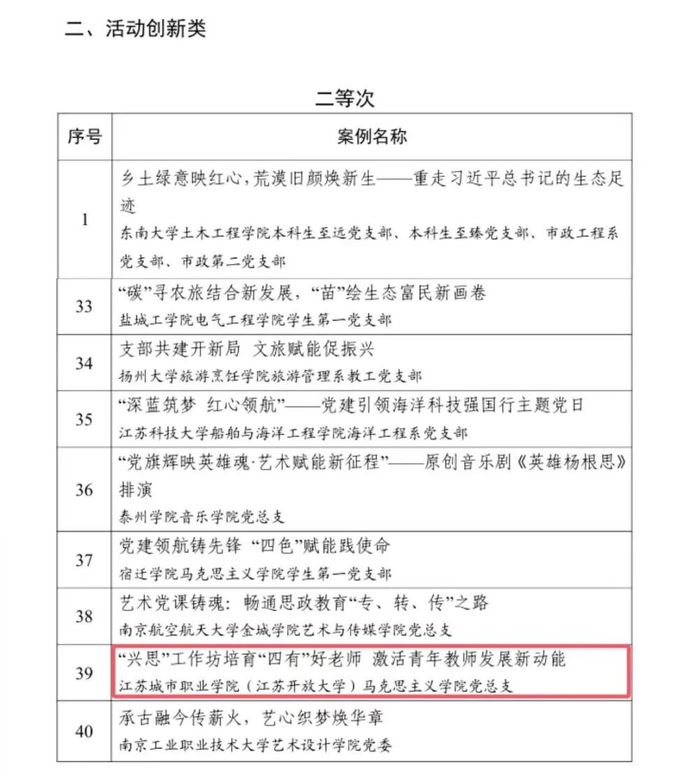 我院喜获江苏高校党建工作创新案例活动创新类二等次