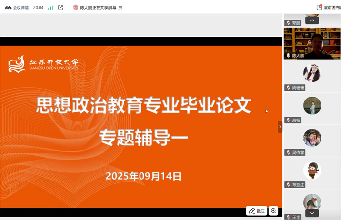 专业负责人陈大鹏老师作专题辅导。辅导围绕“学位论文要求”“选题策略与方法”和“文献检索与综述撰写”三大核心模块展开深度讲解。他从学校规定的学分构成、流程安排与考核标准入手,强调论文写作全过程的重要性,提醒学生严谨对待每一环节。在选题方面,他结合思想政治教育学科的学术性、专业性和实践性,建议学生立足于个人知识背景与研究兴趣,选择兼具理论价值与现实意义的选题,避免范围过宽、资料难寻或思路模糊等常见问题,并通过正反实例对比辅助学生理解。针对文献综述,他现场演示高效检索方法,解析文献综述的写作规范与典型误区,鼓励学生广泛阅读、规范引用,筑牢论文的理论基础。
