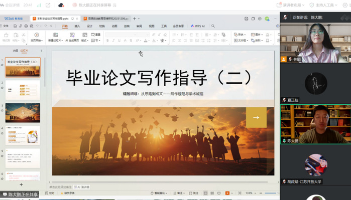 为进一步落实学校关于毕业论文通知的文件精神,切实提升学生学术写作能力与规范意识,近日,马克思主义学院召开思想政治教育专业本科毕业论文第二次集中辅导会。专业负责人陈大鹏作专题辅导,学院论文指导教师及全体学生共同参会,课程负责人林娟主持会议。