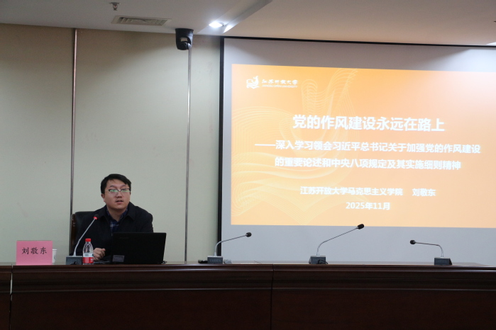 11月13日上午,马克思主义学院青年教师刘敬东应邀赴凤凰街道,以《党的作风建设永远在路上——深入学习领会习近平总书记关于加强党的作风建设的重要论述》为题讲授专题党课。本次活动由白云园社区书记盛静主持,社区党员代表参加专题培训。