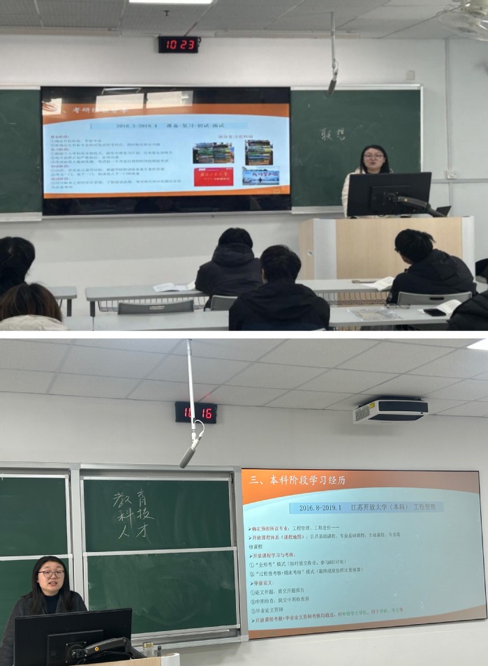 党的二十届四中全会明确提出要“一体推进教育科技人才发展”,作为“90后”的优秀校友,吴明庆聚焦“教育对科技和人才的支撑作用”,以“积累-提升-成果”为脉络,结合自身学习与工作经历为同学们带来了一场干货满满且极具感染力的经验分享。她希望同学们,一是要明确发展目标,做好终身学习规划、职业生涯规划和躬耕实践规划;二是要坚定理想信念,将远大志向与推进中国式现代化、实现中华民族伟大复兴紧密联系;三是锤炼过硬本领,以实际行动诠释新时代中国青年的责任与使命。吴明庆紧扣“祝愿、鼓励、加油”三个关键词,给学生分享了一段话:“你知道什么时候会赢么?就如往前奔跑,黑夜中你知道什么时候会天亮么?都不知道,但我能够知道的,就是跑着跑着,天就亮了!当光照进来的时候,你嘴角上扬的微笑,就是你最大的回报”。她激励学生将个人的青春梦想融入到全面建设社会主义现代化国家的火热实践中,让青春在奋斗中绽放绚丽之花。