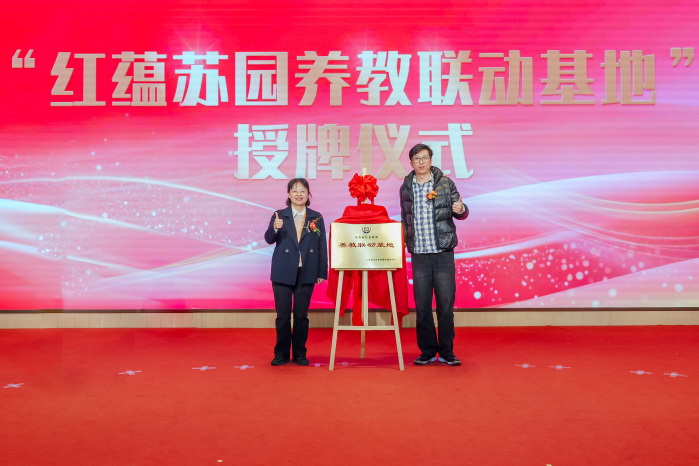 随后,王铮副主任与王红总经理共同为“红蕴苏园”养教联动基地揭牌,百余名苏园居民共同见证了这一时刻。