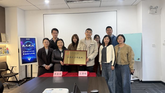 3月26日下午,马克思主义学院院长季海菊带队赴南京云问网络技术有限公司总部开展产学研合作交流,云问科技董事长王清琛及相关业务负责人出席活动,双方共同为“云思政产研基地”揭牌,学院科技副总陈大鹏副教授主持会议。